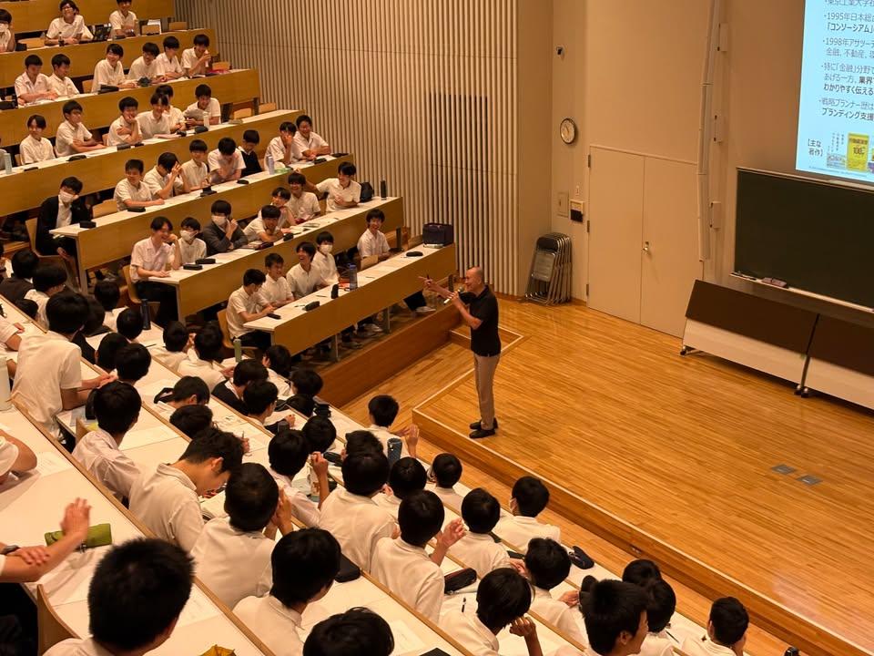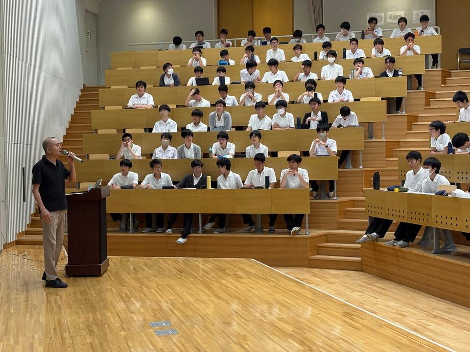 6/21の高1土曜講座は橋本之克氏(19期卒)による講演でした。テーマは「行動経済学でセルフマネジメント力を高める」。行動経済学に関してたくさんの著作のある橋本氏から、「認知バイアス」により人間がとる不合理な行動の例が次々と紹介されると、生徒たちも似たような経験があるようで多くがうなずいていました。後半は「やりたくなくても行動する」「難しい目標を達成する」など活用法の事例が披露されると、生徒からはすぐに実践してみたいといった声があがっていました。