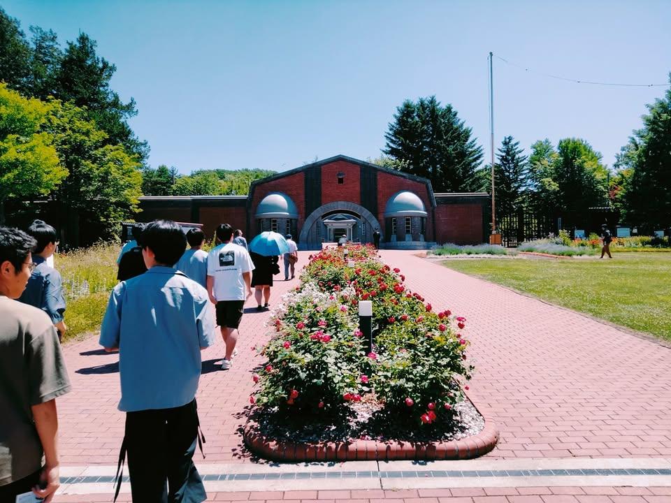 修学旅行3日目のC組は知床第一ホテルからバスで網走周辺を巡りました。まず最初に向かったのはオシンコシンの滝です。知床の景勝地、オシンコシンの滝は、「川下にエゾマツが群生する所」という意味のアイヌ語に由来します。斜里町の名所、天に続く道展望台では、約28㎞もの長さの直線道路の長さに圧倒されました。オホーツク流氷館では、網走で見られる流氷のメカニズムを知り、そこで形成される生態系を学びました。その後、-15℃を体感できる部屋に入り、北海道の冬の厳しさを実感しました。午後はサロマ湖に移動しました。サロマ湖ワッカネイチャーセンターでは、夏のサロマ湖を自転車で疾走しました。遠くに見える知床連峰の稜線とサロマ湖のさざなみを眺めながら自転車で走るのは、まさに爽快でした。修学旅行3日目はオホーツク海の風景とともに、北海道・網走エリアの自然と文化に触れることができ、非常に実りのある1日でした。(高2風早くんより)