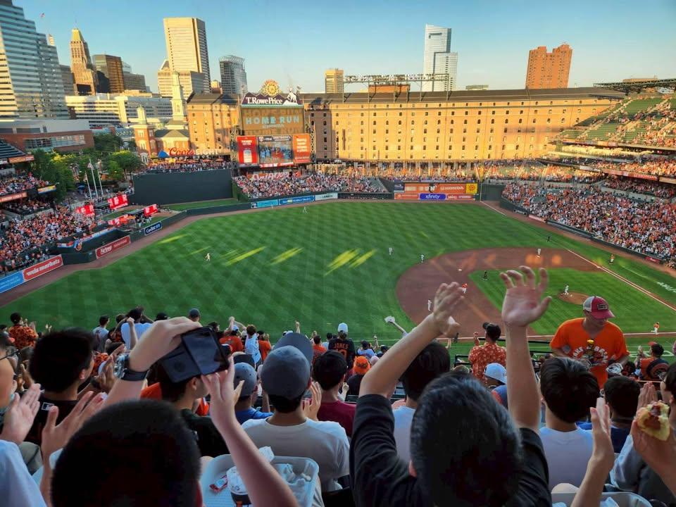 研修初の週末を迎え、土曜日はBlatimore市街観光とMLB観戦をしました。Baltimore Orioles vs Oakland Athleticsの試合で、偶然NPBオリックスでも活躍したアダム・ジョーンズ選手のOrioles殿堂入りを記念したボブルヘッド人形が配布される日でした。