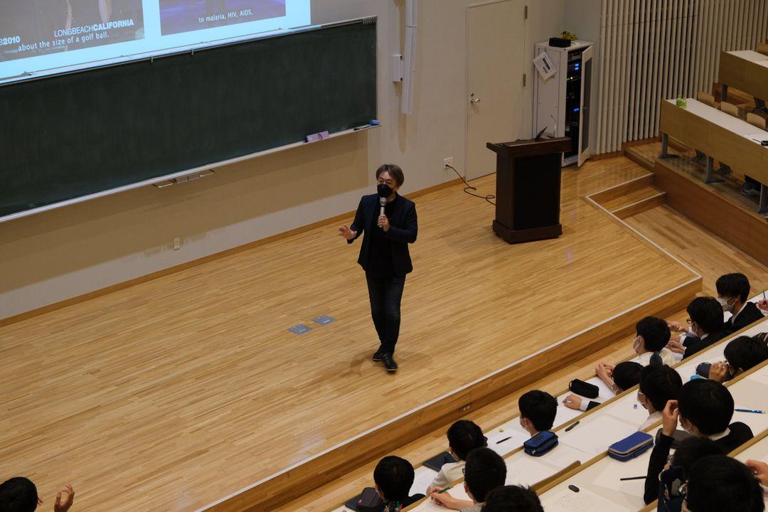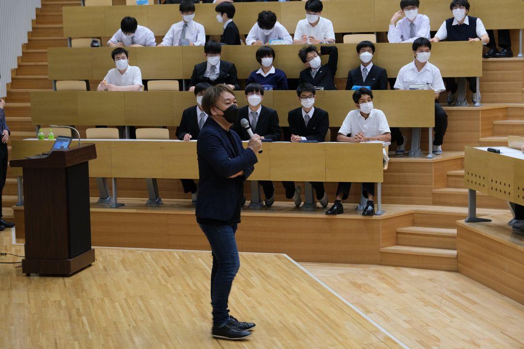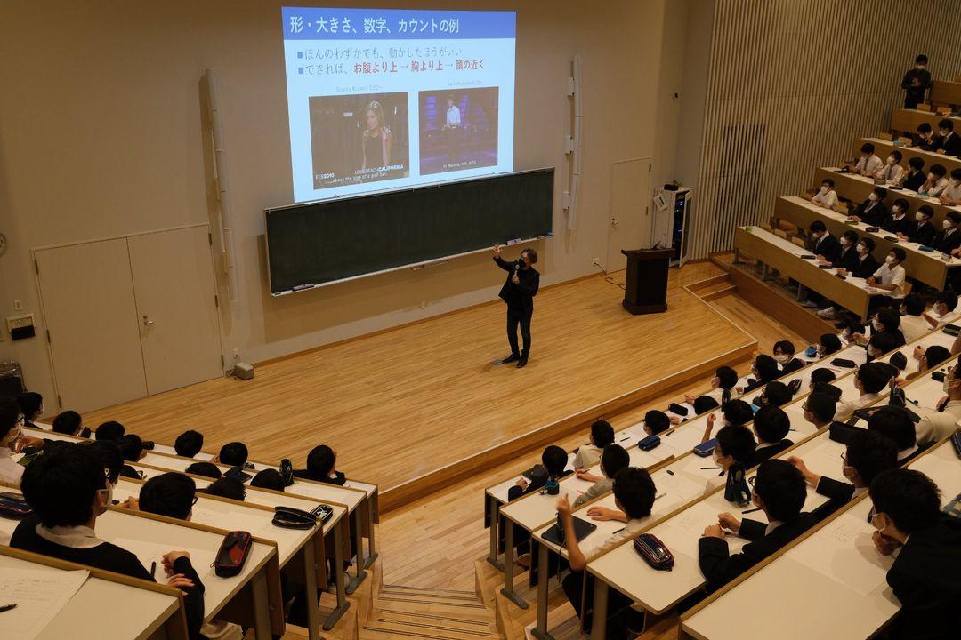 5月14日の第3回高1土曜講座の講師は、日本マイクロソフト株式会社の業務執行役員でエバンジェリストの西脇資哲さん。この日の講演タイトルは「伝わるプレゼンテーションの方法」。「プレゼンの達人」と呼ばれる西脇さんからプレゼンの極意を伝授していただきました。プレゼンでは何が大事かといったことから、効果的なプレゼンスライドの作り方や魅力的な話し方といったプレゼンの技法まで、具体的な例を引きながら次々と話が展開し、生徒達からはしばしば、納得や感心の声がもれていました。