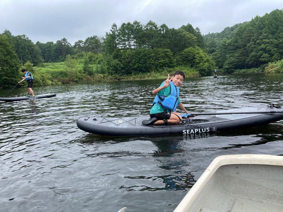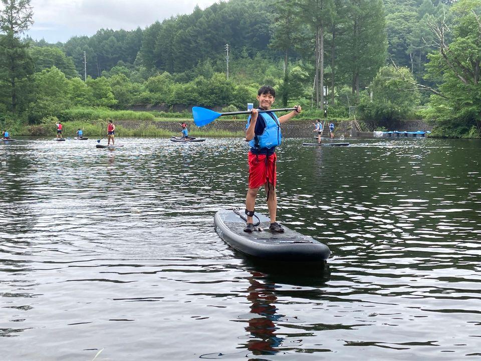 中2はアクティビティとして、トランシーバーを用いたトレッキング、グランドゴルフ、SUP(スタンドアップパドルボード)を体験しました。