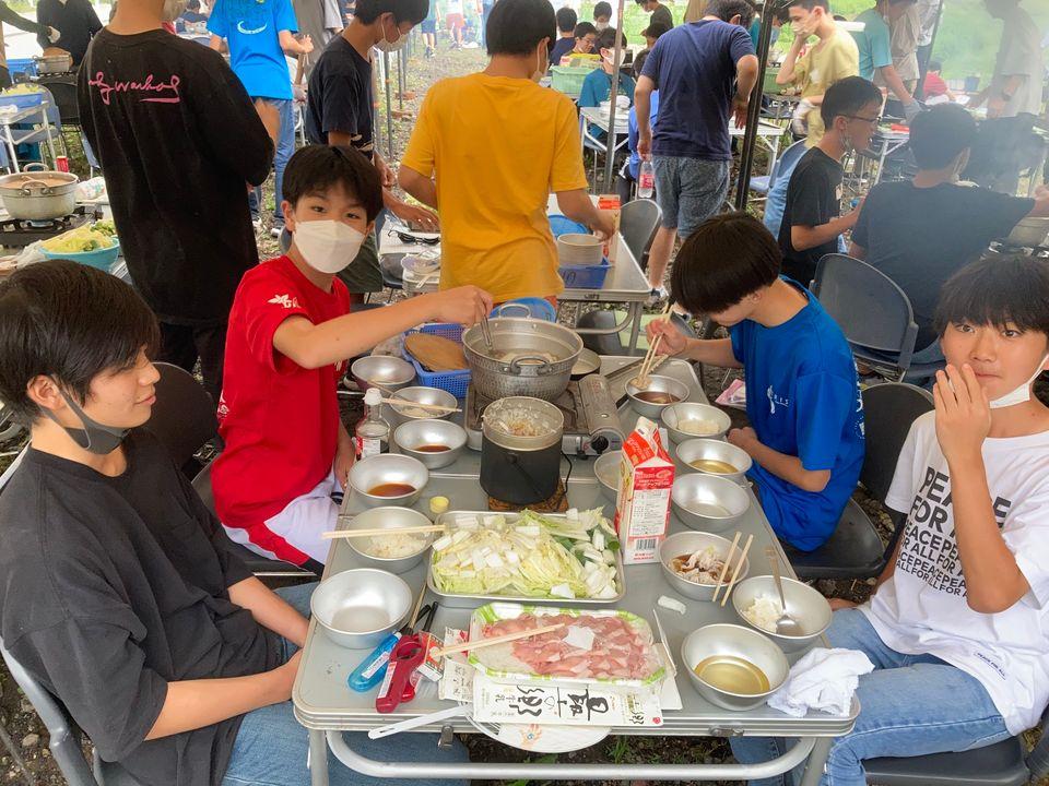 本年は学年全員での実施となり、キャンプ場でのテント設営、テント生活、飯盒炊爨など、同級生と協力しなければ上手くいかない本格的なキャンプ生活を体験しました。
