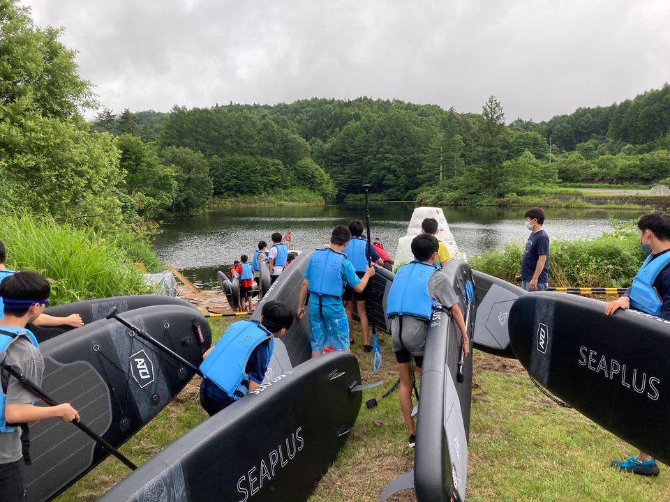 SUPのボードは準備期間中にスタッフの教員が人力空気入れで腕をパンパンにしながら、頑張って用意しました。