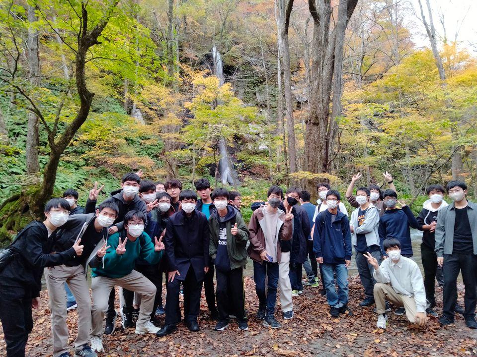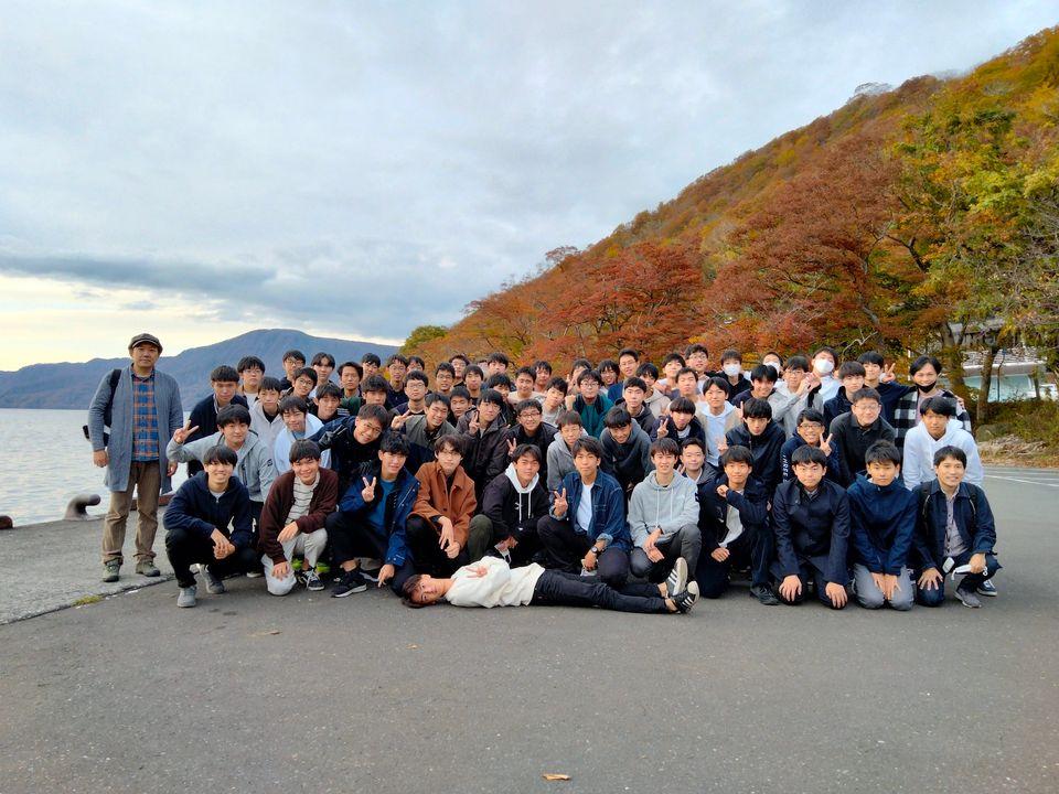 一日目、新幹線はやぶさに乗って七戸十和田駅に着いた一行はバスで奥入瀬渓流に向かい、十和田湖観光船を楽しみました。紅葉シーズン真っ盛りで美しい景色を堪能しました。ホテルでの夕食後に生徒たちは弘前駅周辺を散策して気分転換をしていました。