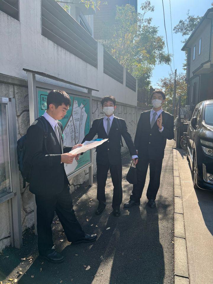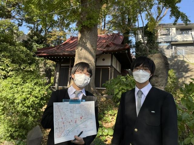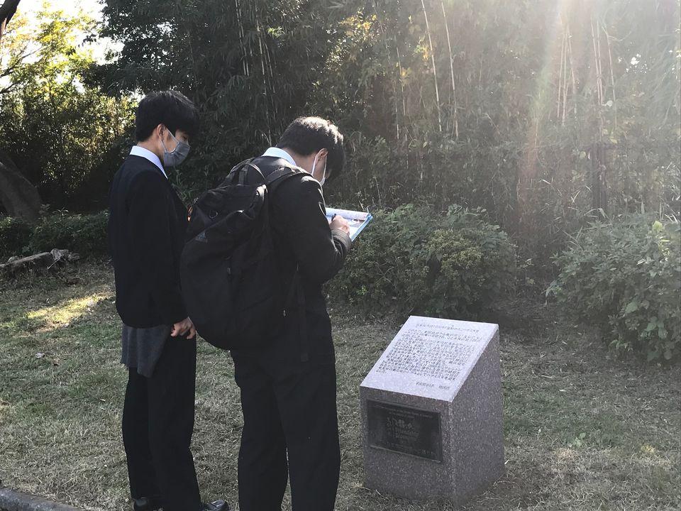 毎回ゲストスピーカーによる講演を行っている高1土曜講座ですが、11/19の講座は、聖光学院が立地する本牧台地周辺を歩いて回る「ミニ巡検」を実施しました。5つのコースに分かれて班ごとに学校を出発し、2時間ほどをかけて、あらかじめ設定されたポイントごとの問題を解きながら進みます。スマホの地図アプリやネットの情報にはできるだけ頼らずに、紙の地図と自分の目で実際に見たことをもとに解答することが条件です。学校の住所にある「滝ノ上」の由来となっている滝を見たり、急な坂を上り下りして地形の凹凸を感じたり、いろいろな発祥の地となっている横浜の歴史を知ったりと、ふだんの通学路の往復では気がつかなかった発見が数多くあったようです。