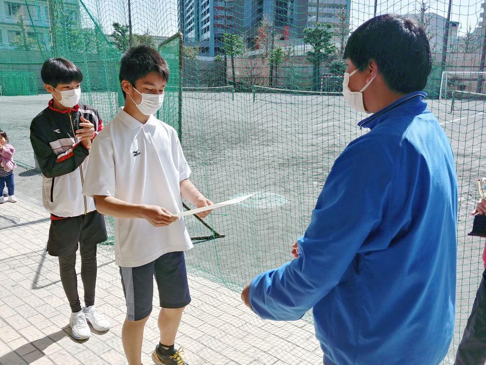 硬式テニス部の中学2年生たちが、中区大会に出場し、優勝しました。