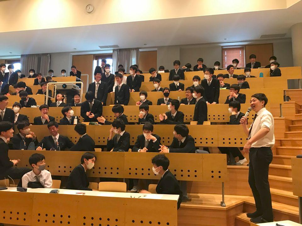 4/15の高1土曜講座の講師は、医師で小説家の中山祐次郎氏(36期卒業)でした。外科医として活躍するかたわら、テレビドラマ化もされた『泣くな研修医』など、人気作家としての地位も築いている中山氏ですが、これまでの経歴は決して順風満帆なものではなかったという話です。何度も原稿を没にされたエピソードなど壁を越えるための数々の苦労が披露されると、「やりたい事をやるのが勝ち」という中山氏の言葉が、進路を模索中の生徒たちに説得力のあるメッセージとして届いたようです。