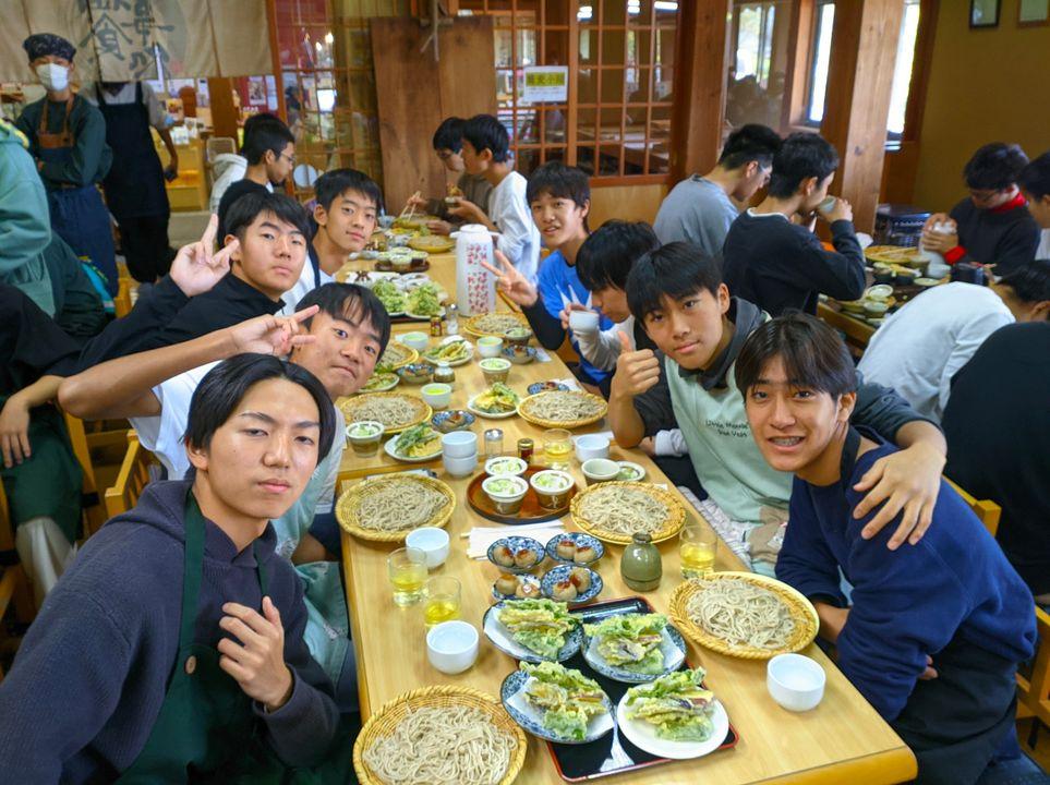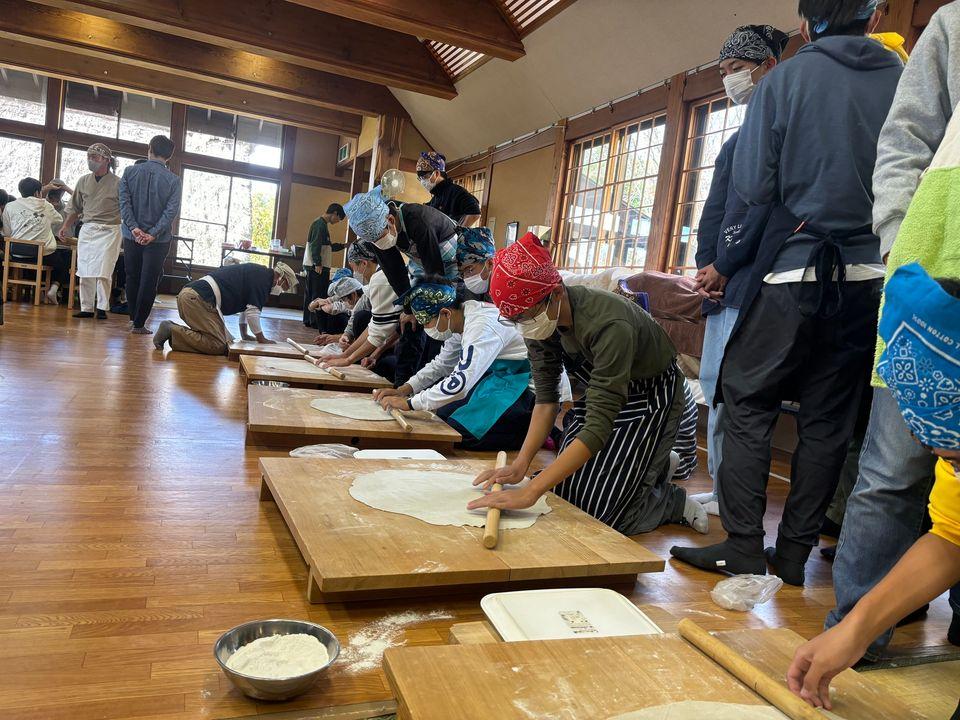 その後行った蕎麦打ち体験では、自分たちで生地から蕎麦を作りました。麺を細く切るのが難しく、うどんのような太さの蕎麦ができてしまいましたが、それでも自分たちで作った蕎麦は美味しかったです