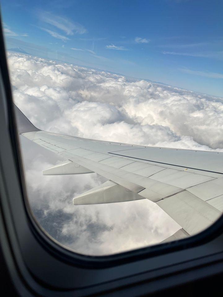 12月11日、いざ長崎研修旅行へ出発!行きの飛行機はバスで飛行機まで移動しました。離陸したあと左にはきれいな富士山が見えました。