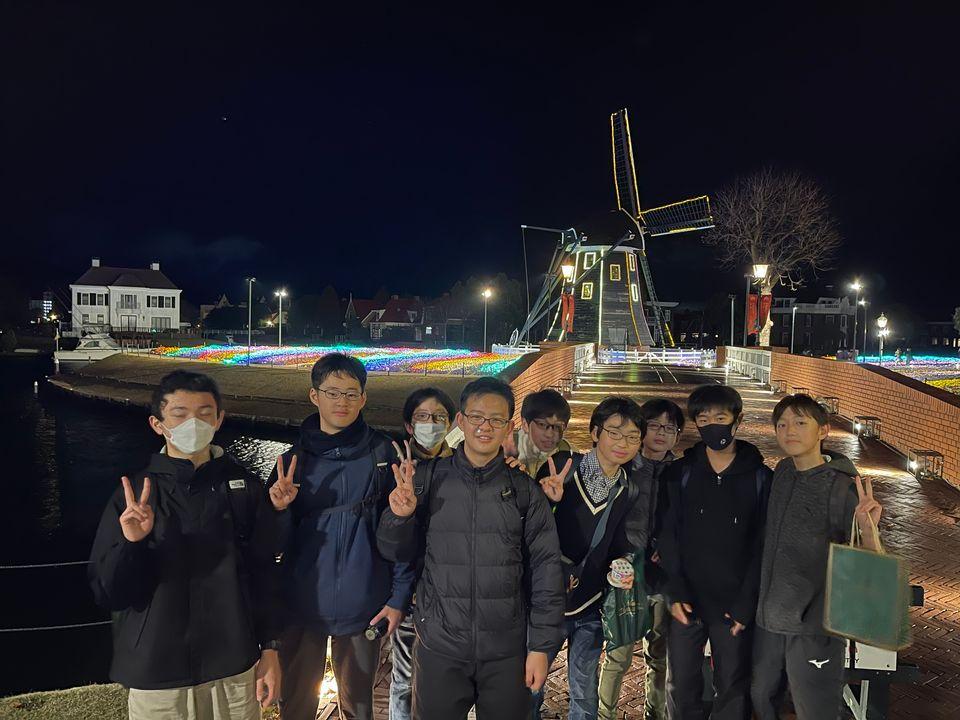 ハウステンボスは、オランダがモデルで美しかったです。多くの生徒が、たくさんのアトラクションなどを楽しみました。夕方から、イルミネーションが始まり、特に観覧車からの景色は格別でした。6時頃、多くの生徒が夕御飯を食べ始め、名物の佐世保バーガーを頬張りました。最後に、みんなが思い思いのお土産を買っていました。明日も無事に長崎研修を楽しみたいです。