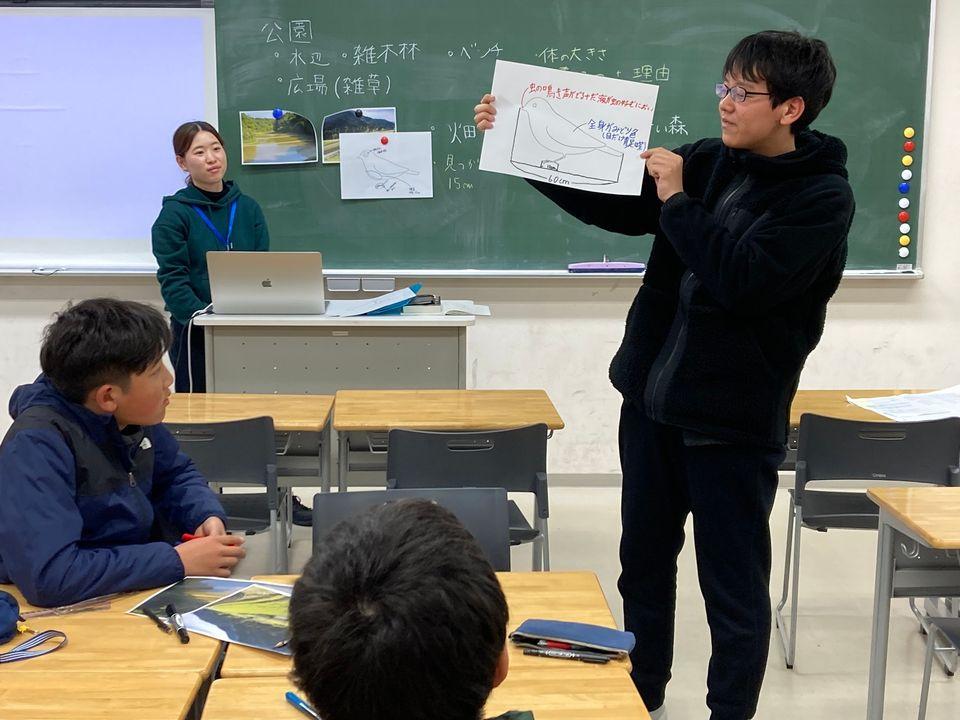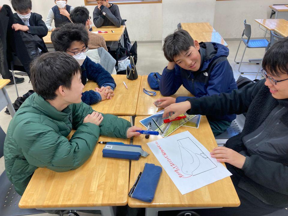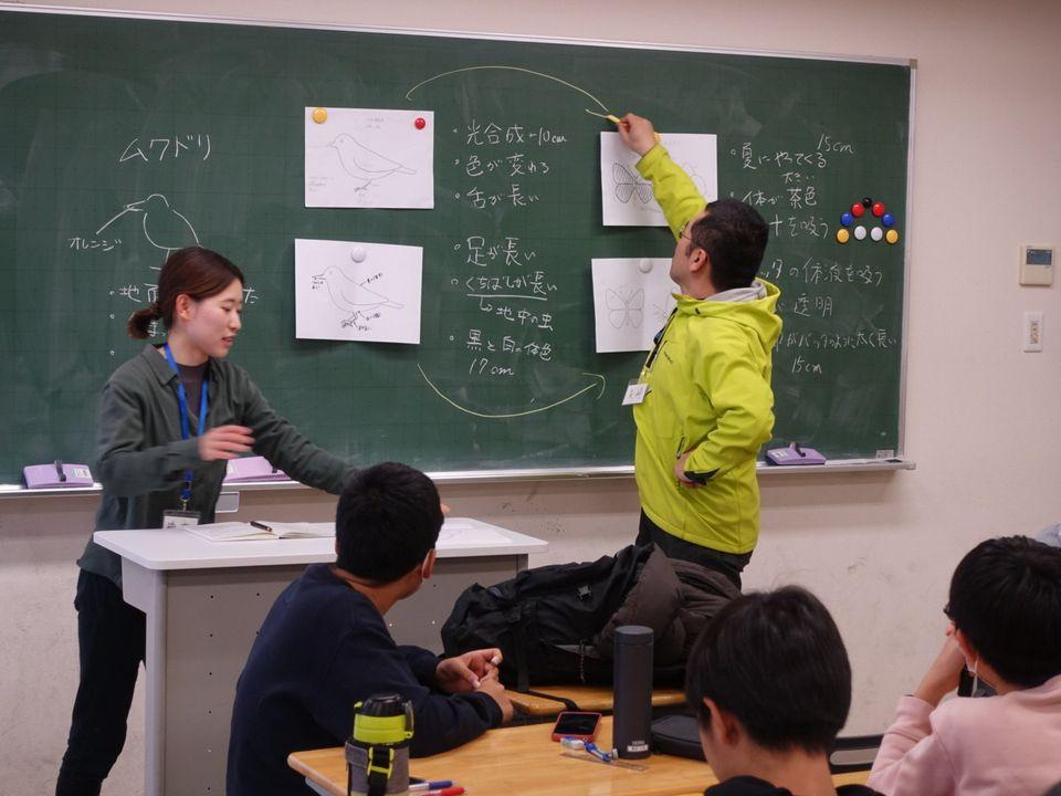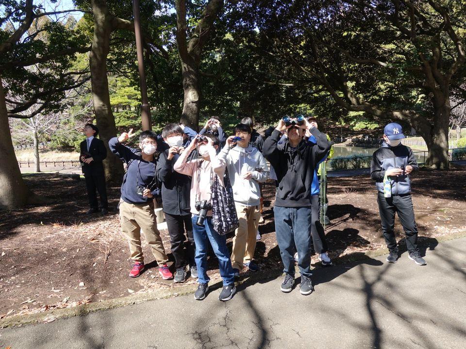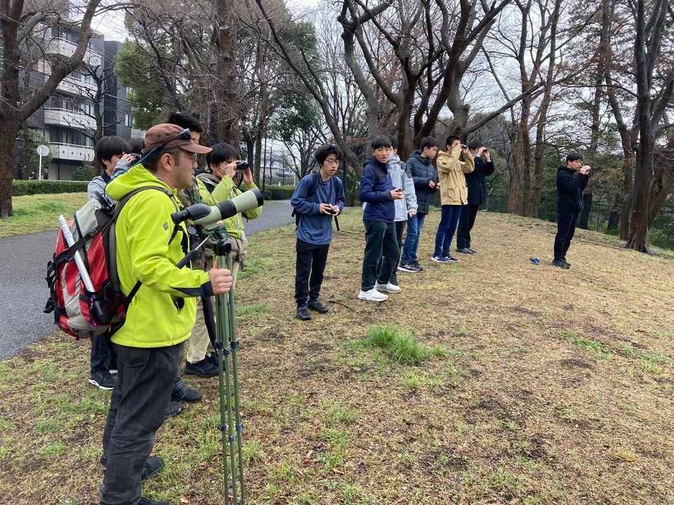 3月25日は霧雨,3月27日は晴天でしたが,それぞれ中1・中2の希望者12名が参加し,東京都立大学研究員(40期卒業生)を先生にお迎えして,半日自然観察,半日ワークショップを体験しました。自然観察は,首から双眼鏡下げて校内敷地および隣接する根岸森林公園へ。そよ吹く風や葉擦れの音に耳を傾けながら,鳥たちの瞬間発する声や樹上高く佇む姿を指摘していただき,雨でも晴れでも17種類くらいの鳥に出会えました。ワークショップでは全員がフルに想像力(と創造力)をはたらかせ,楽しみながら進化のメカニズムと生物の適応などについて深く考察するものでした。疲れることも眠くなる暇もなく,一日があっという間に過ぎ去ってしまいました。夏の昆虫バージョンとともにオトナも楽しめる講座でした。(引率の多城先生より)
