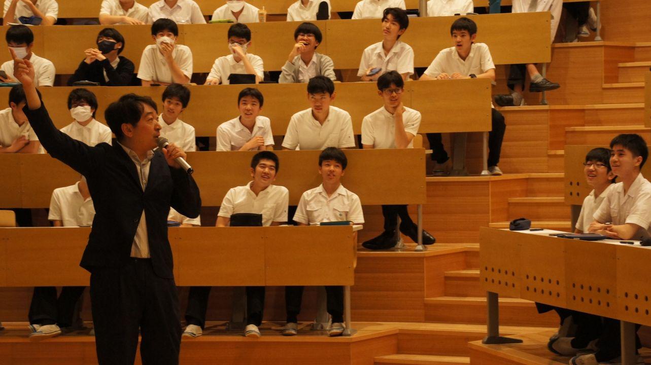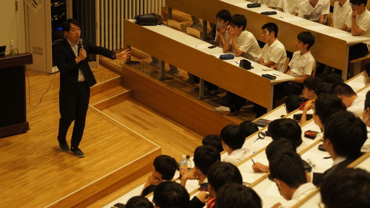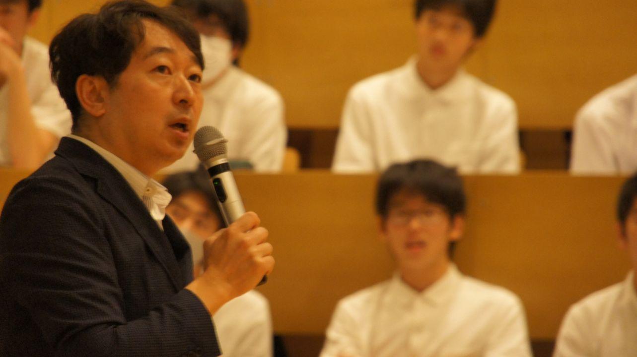 5/18の高1土曜講座は、36期卒業生で医師&小説家の中山祐次郎氏による講演でした。高校生の時に途上国の悲惨な状況を報ずるニュースをみて医師を志したという中山氏。外科医として病院勤務を続けながら、もう一つの夢であった小説家としても活躍しています。ドラマ化もされた『泣くな研修医』をはじめベストセラーを出していますが、これまでの道は決して「順風満帆ではなかった」といいます。いくつもの困難を乗り越えた話を聞いた後の「やりたいことをやったら勝ち」というメッセージが強く心に響き、これから進路を考える生徒たちの背中を押してくれたようです。