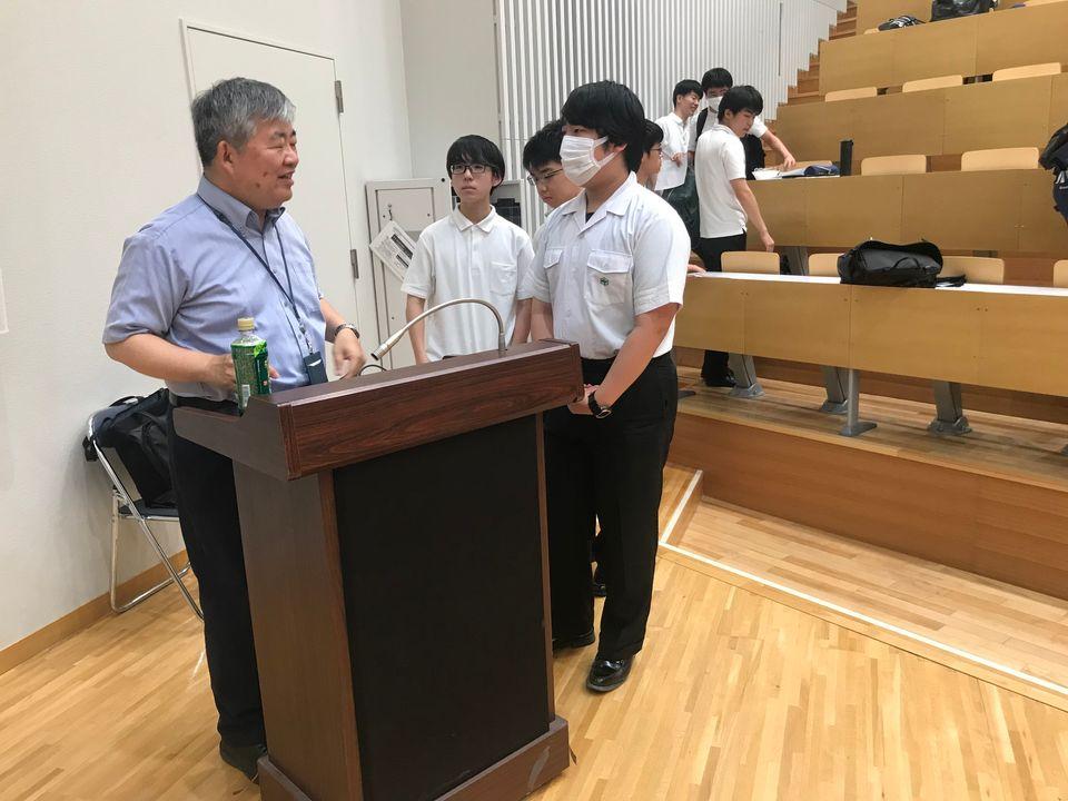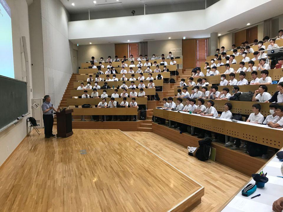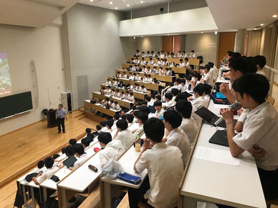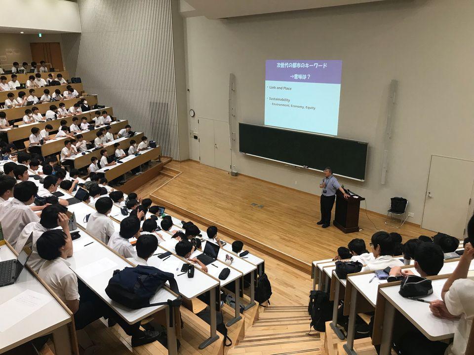 6/15の高1土曜講座の講師は、18期卒業で東京大学大学院新領域創成科特任教授の中村文彦氏による講演でした。都市工学を専門とする中村先生から、都市交通のさまざまな課題が統計データとともに示されるとともに、課題解決に取り組む世界各地の実例が紹介され、さらに都市交通の未来の方向性へと話が進みました。次々と映し出される都市の写真から何が読み取れるかを生徒に問いかけながら進めていくという形式での講義は、考えながら話を聞くという雰囲気を生み、生徒たち自身も新鮮に感じたようです。目的と手段を混同せず、「何のためか」を常に見極めることが大切であるなど、随所で語られるメッセージは、生徒たちに気づきや共感を呼び起こしていました。