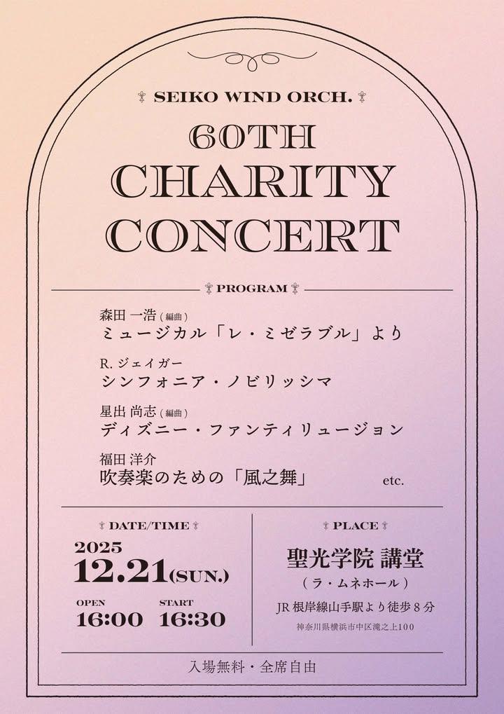 12月21日(日)、本校講堂にて第60回チャリティーコンサートを開催いたします。
