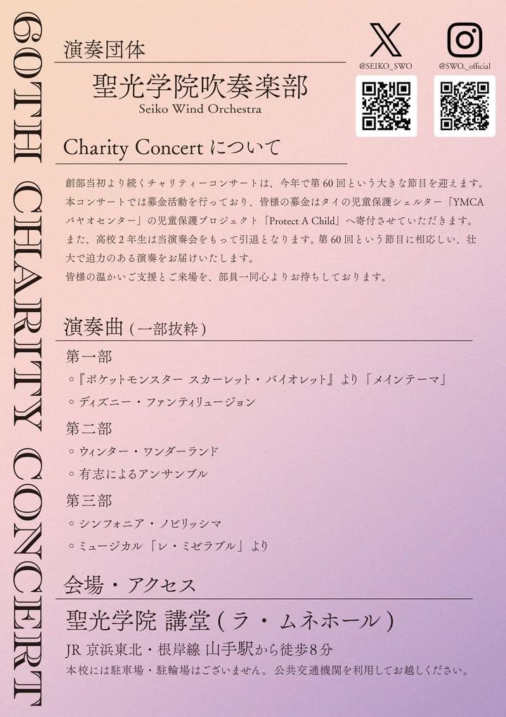 【聖光学院吹奏楽部 チャリティーコンサート開催のお知らせ】